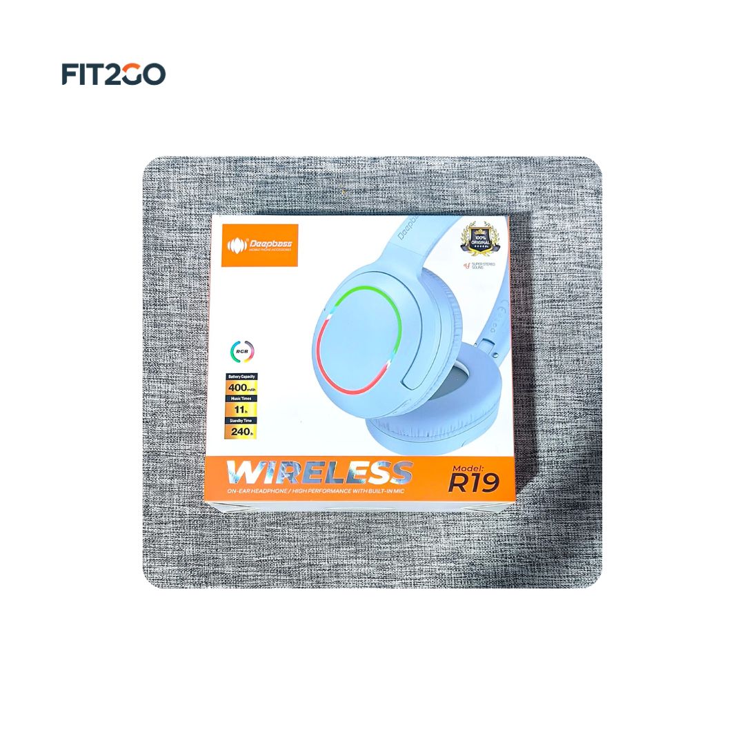 Experience powerful, crystal-clear sound with the Deepbass R19 Wireless headphones. Designed for comfort and performance, these wireless headphones deliver deep bass, immersive audio, and long-lasting battery life, perfect for workouts, travel, or daily use. With a sleek design and easy connectivity, the Deepbass R19 keeps you motivated and in the zone wherever you go.