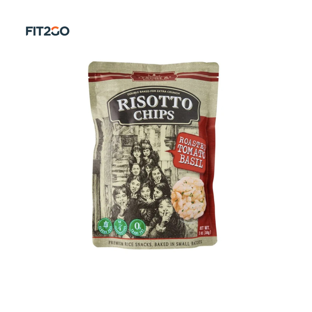 Savor the deliciousness of Risotto Chips in Roasted Tomato Basil flavor, a premium snack crafted from high-quality rice. Naturally gluten-free, corn-free, heat-free, and trans-fat-free, these chips offer a wholesome and guilt-free indulgence. Perfectly seasoned with the rich taste of roasted tomato and fragrant basil, they’re an ideal choice for any occasion.